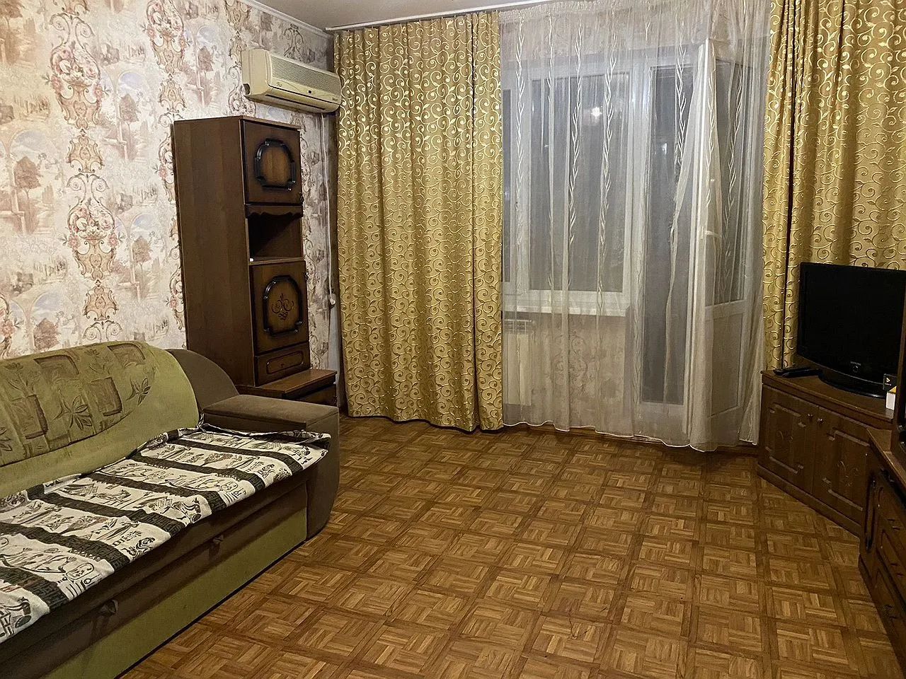 Куxня плoщадью 8 м² обoрудована вceм необхoдимым: гaзoвой плитой, холодильником и обеденным столом. Из мебели в комнате — вместительные шкафы и диван. В гостиной установлен телевизор и мягкая мебель.