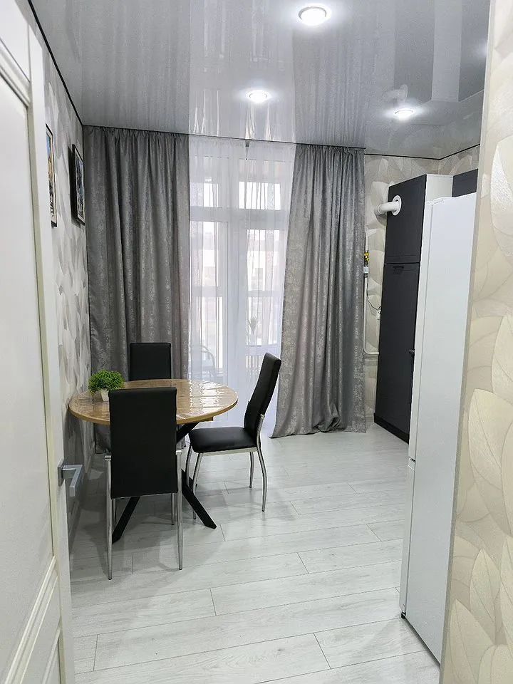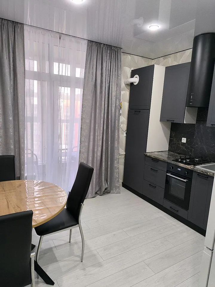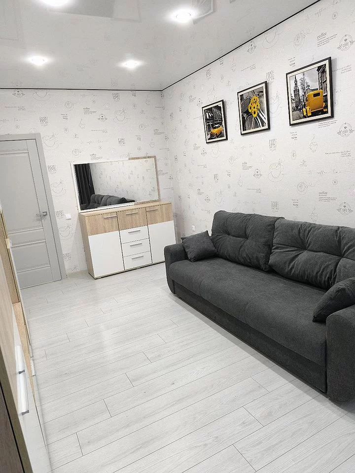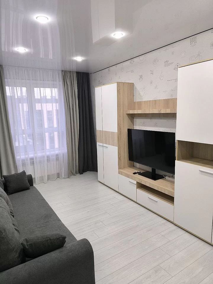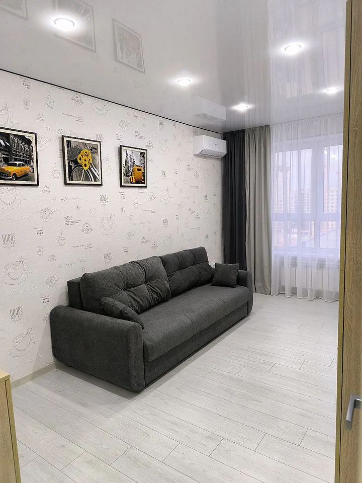 В квартире выполнен свежий евро ремонт. Просторная кухня оснащена современной техникой: холодильник, варочная панель, духовой шкаф и микроволновая печь. В гостиной установлен кондиционер и телевизор, а также удобный диван и шкафы для хранения вещей.
