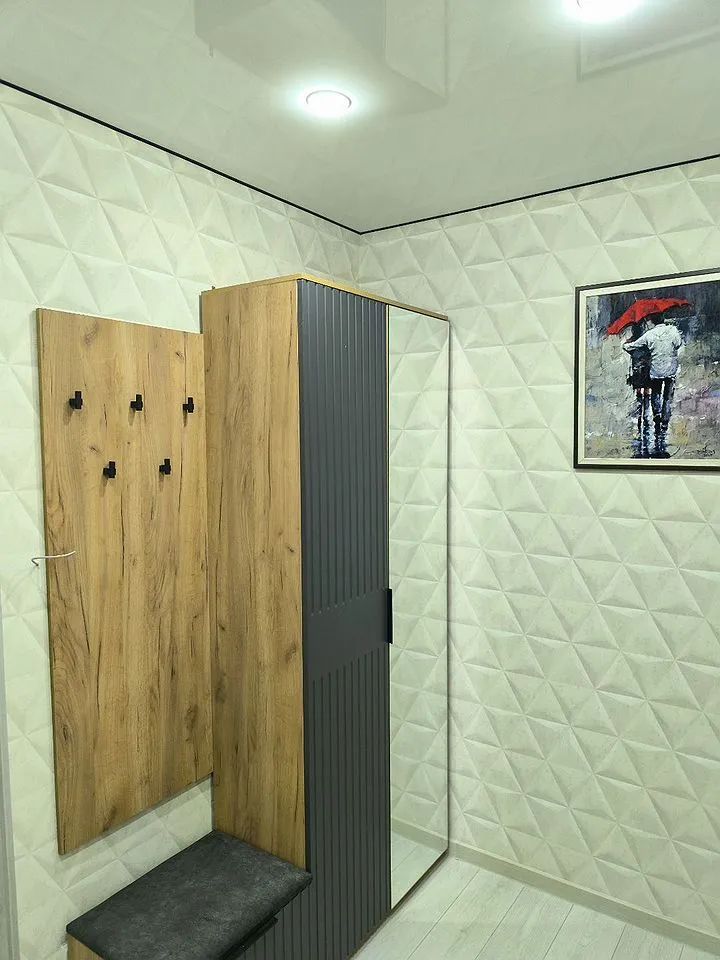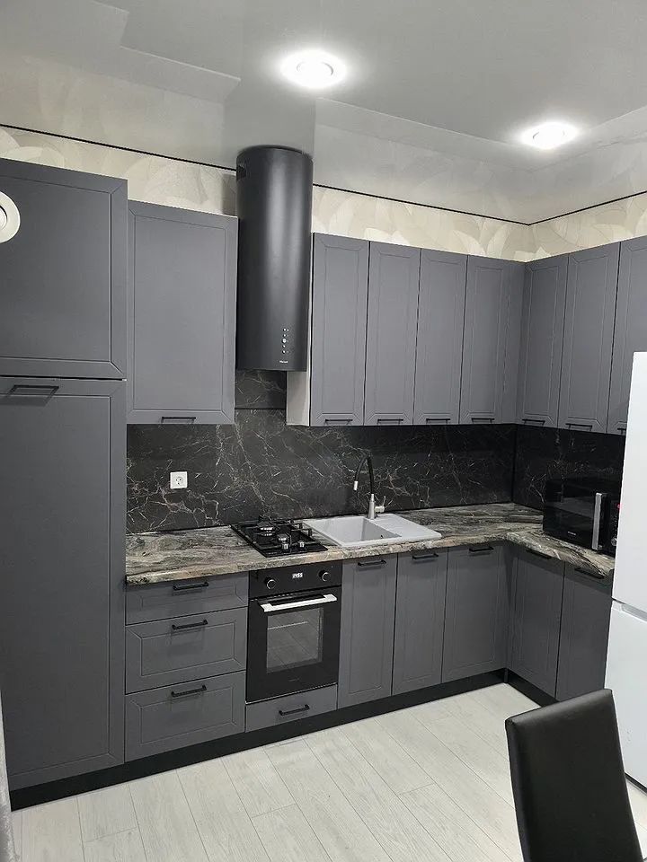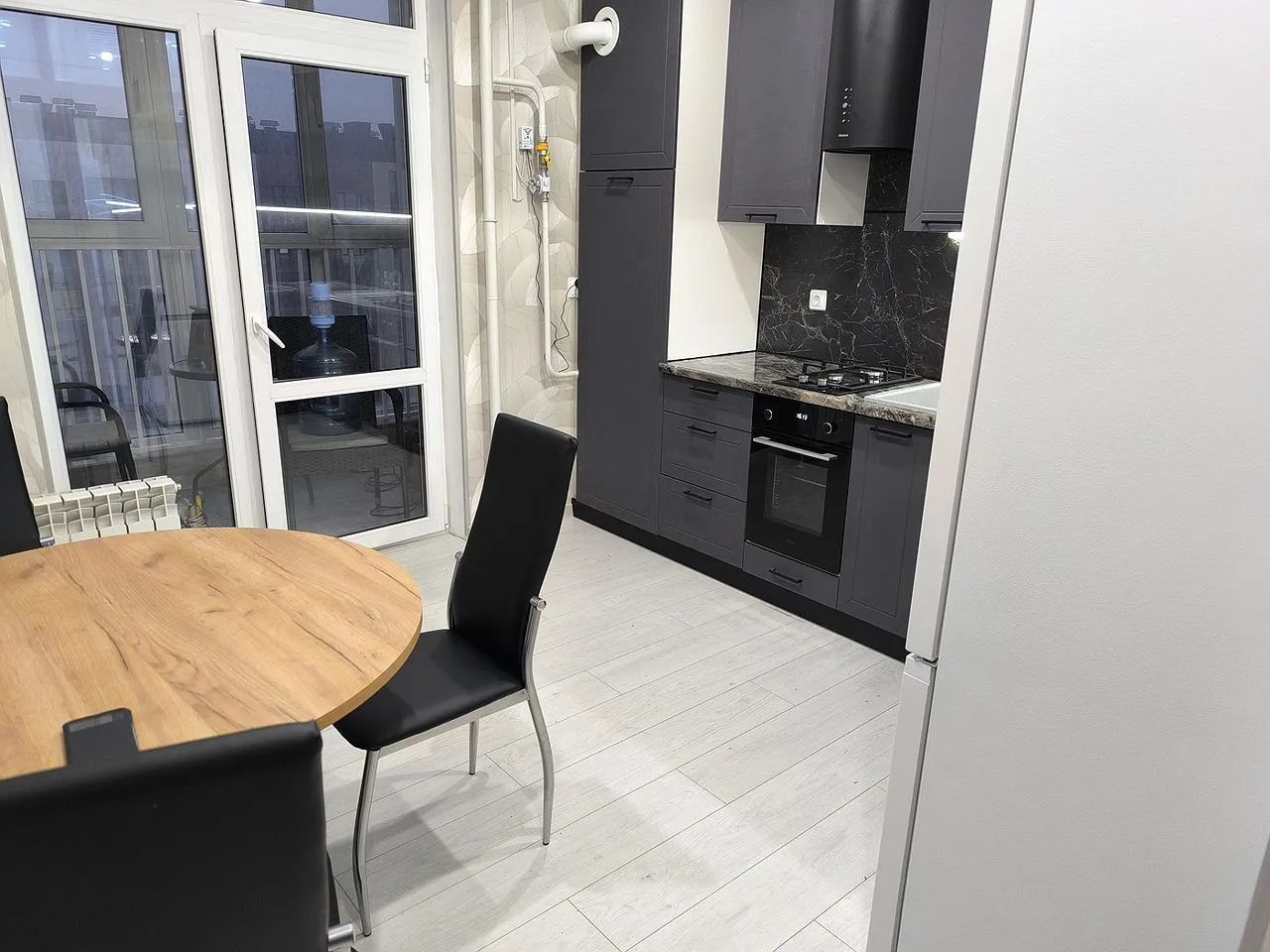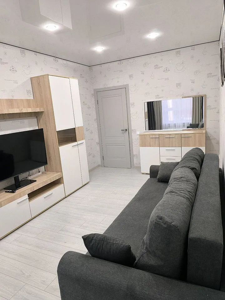 В квартире выполнен свежий евро ремонт. Просторная кухня оснащена современной техникой: холодильник, варочная панель, духовой шкаф и микроволновая печь. В гостиной установлен кондиционер и телевизор, а также удобный диван и шкафы для хранения вещей.