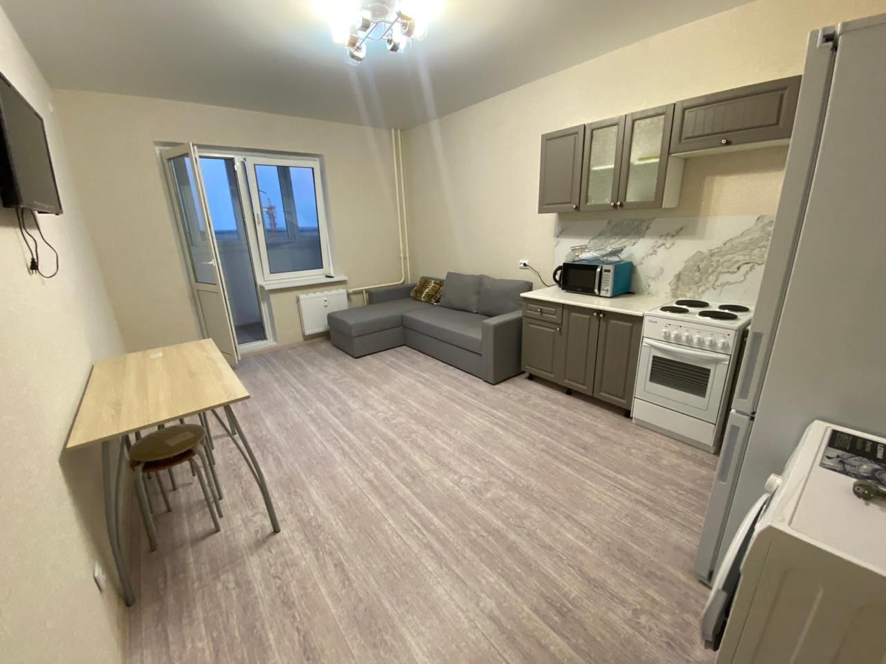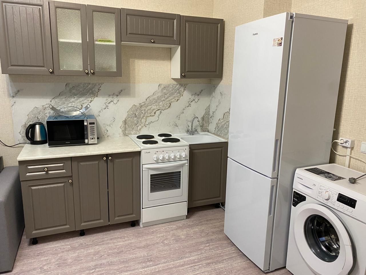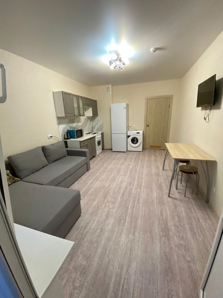 Квартира с евроремонтом, все детали интерьера продуманы до мелочей. В комнатах и на кухне есть необходимая мебель. Для вашего комфорта установлены холодильник, телевизор и стиральная машина. Санузел совмещенный, в ванной комнате установлена ванна. Два балкона.