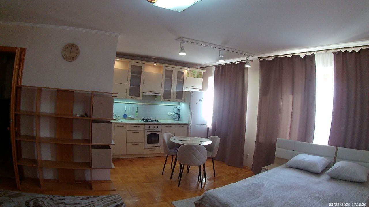 В квартире сделан дизайнерский ремонт, который радует глаз и создает уютную атмосферу. Просторная жилая зона площадью 27 кв. м гармонично объединяет гостиную, спальню и кухню. На кухне есть современная мебель и вся необходимая техника: холодильник, вытяжка, стиральная машина, чайник, пылесос, микроволновая печь, утюг гладильная доска. Что не мало важно - своя питьевая фильтрованная вода.