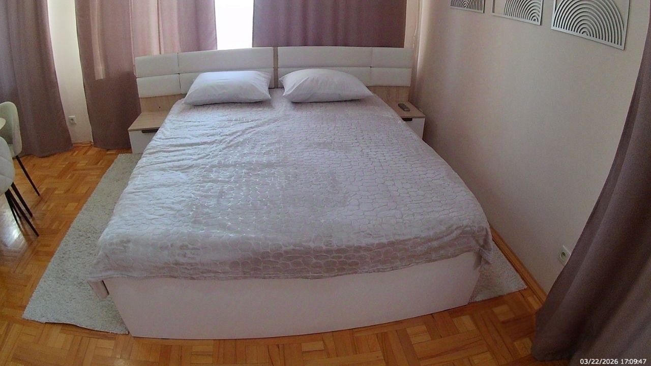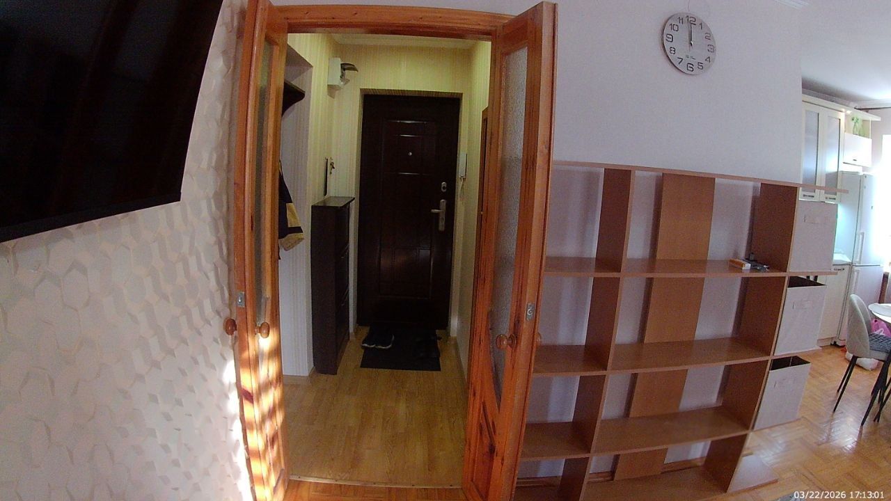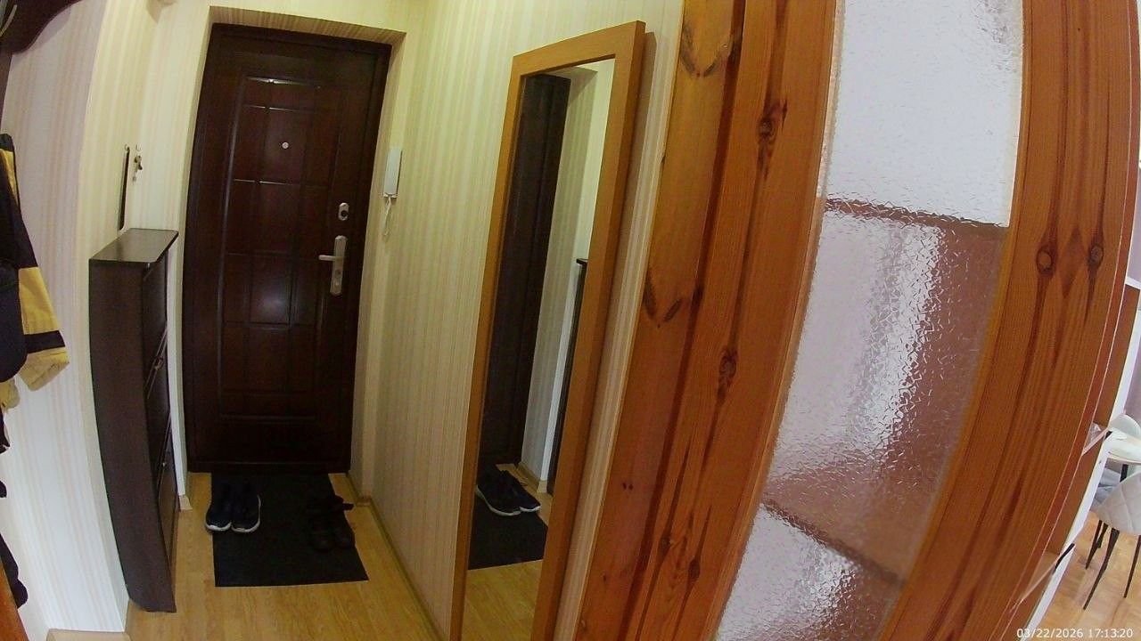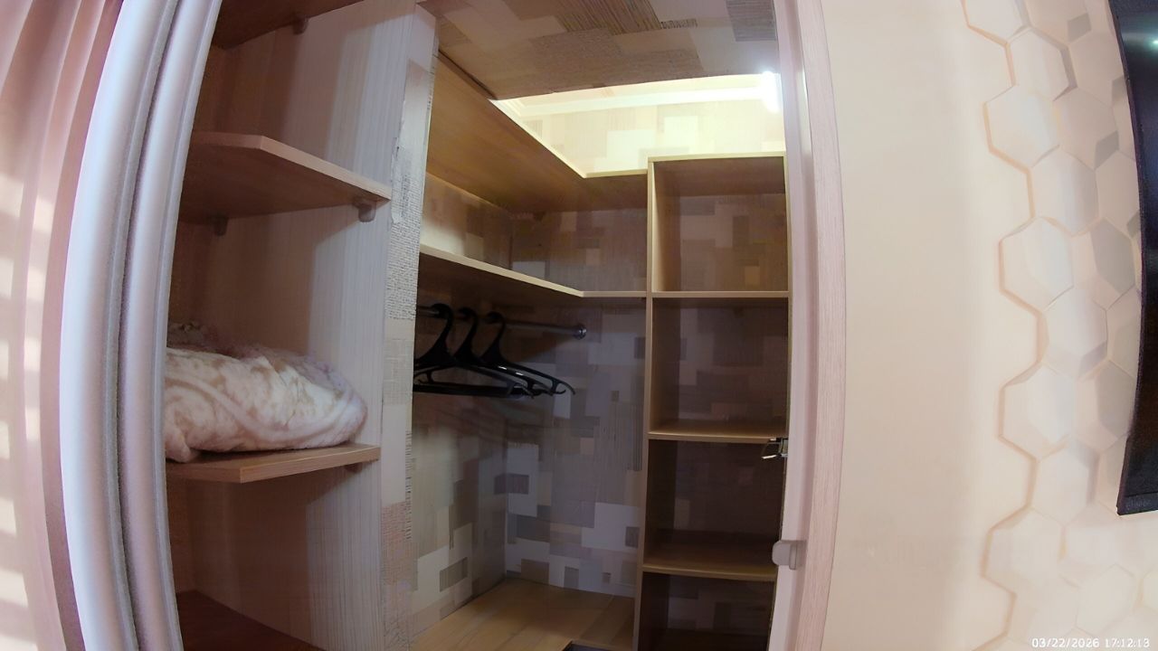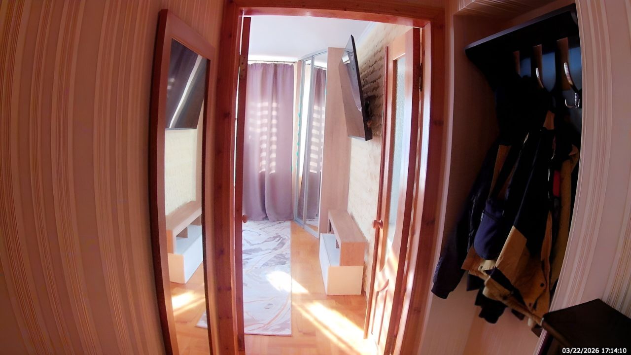 Санузел совмещенный, оборудован ванной. В ванной комнате находится газовая колонка, обеспечивающая бесперебойным горячим водоснабжением. Из окон открывается вид как на улицу, так и во двор, что позволяет наслаждаться свежим воздухом. Балкон полностью обшит деревом. В гостиной весит телевизор 65 дюймов. В комнате есть кондиционер и двухспальная кровать. Хороший паркетный пол. Отопление скрыто в деревянные решётки и деревянные подоконники. Все окна и двери деревянные.