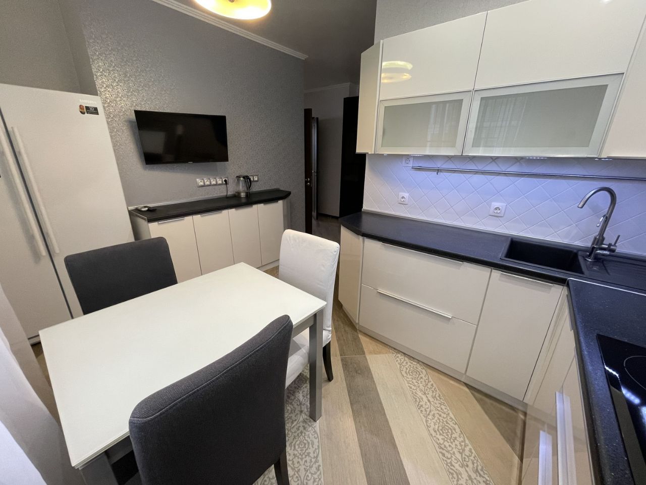 В квартире 3 сплит-системы. На кухне и ванне теплый пол. В зале, спальне и на кухне по телевизору.