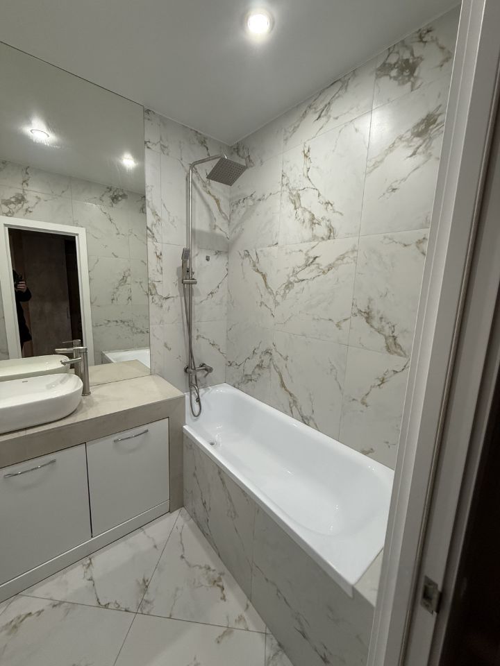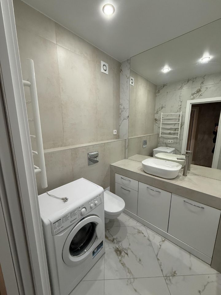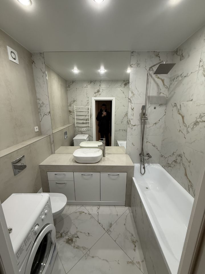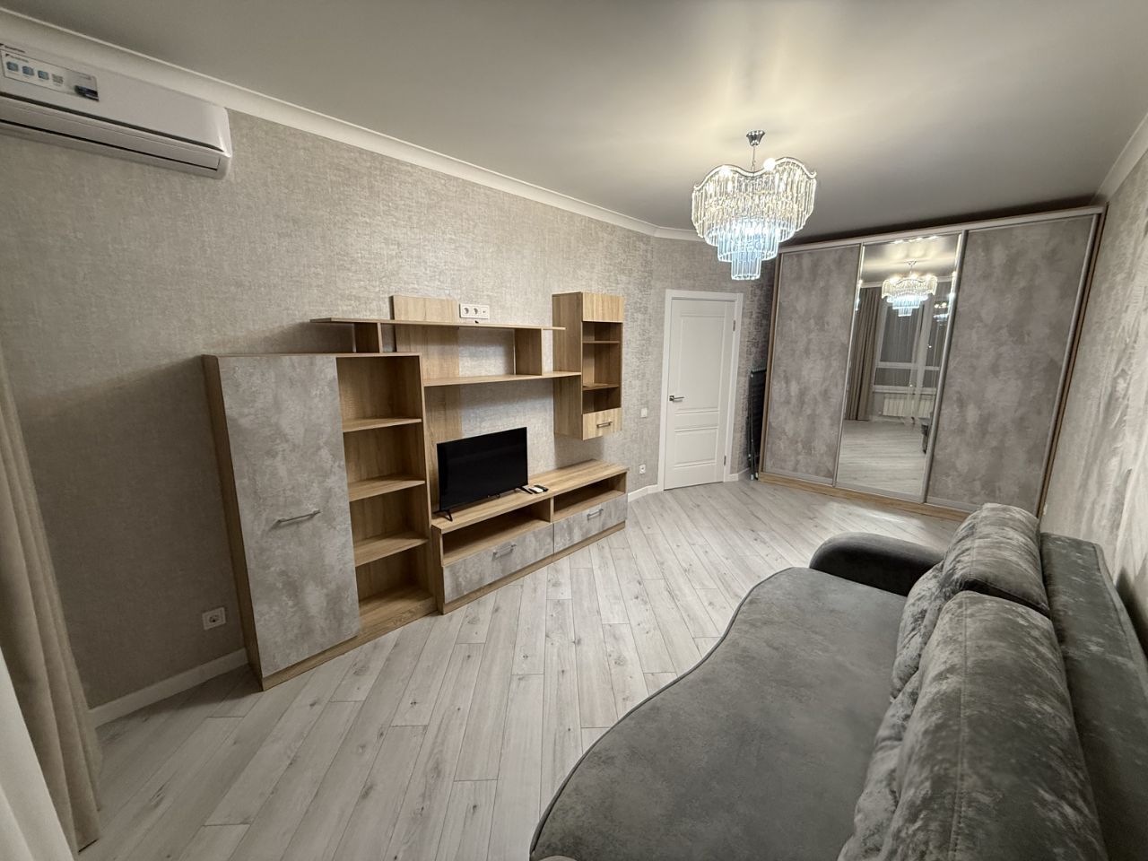 В квартире сделан евроремонт, установлена современная мебель на кухне и в комнате. Для вашего удобства есть вся необходимая техника: кондиционер, холодильник, телевизор и стиральная машина. Ванная комната оборудована ванной и тропическим душем, что позволит вам выбрать наиболее подходящий вариант для расслабления после трудового дня. Потолки высотой 2.74 метра добавляют простора и света.