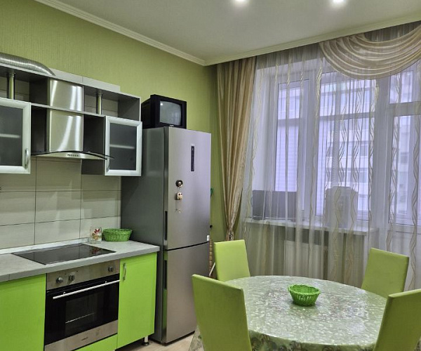 !В квартире сделан качественный, продуманный до мелочей ремонт. Предусмотрено все для комфортного проживания: кухня с встроенной техникой, просторный шкаф, широкая двухспальная кровать- подиум с удобным... |