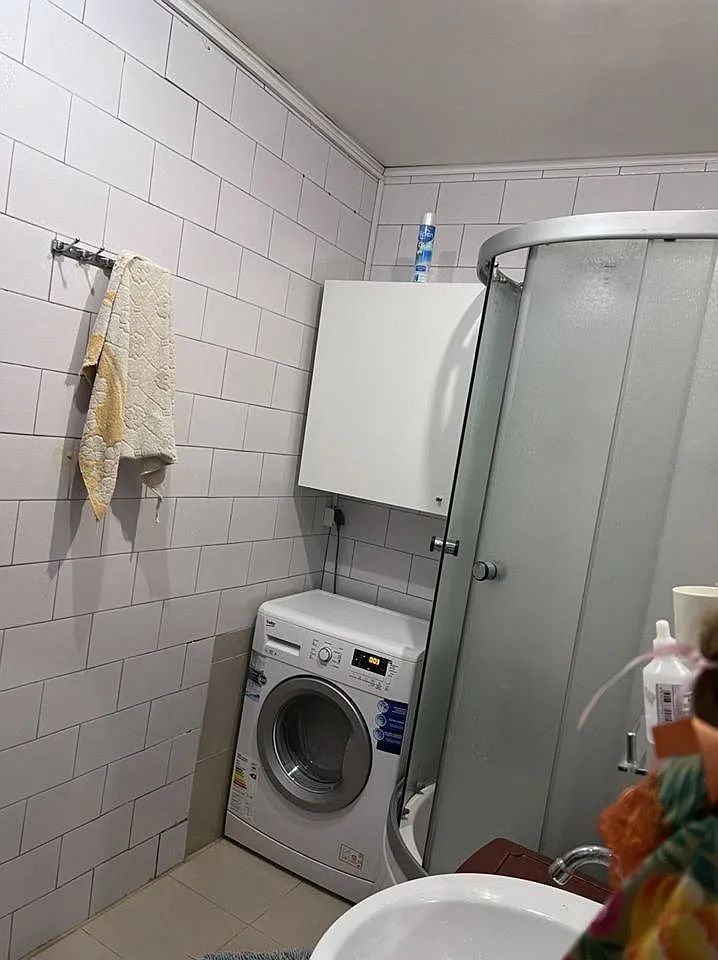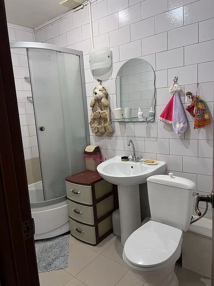Санузел совмещен душевая кабина, унитаз, раковина, стиральная машина автомат, водонагреватель на случай отключения горячей воды.