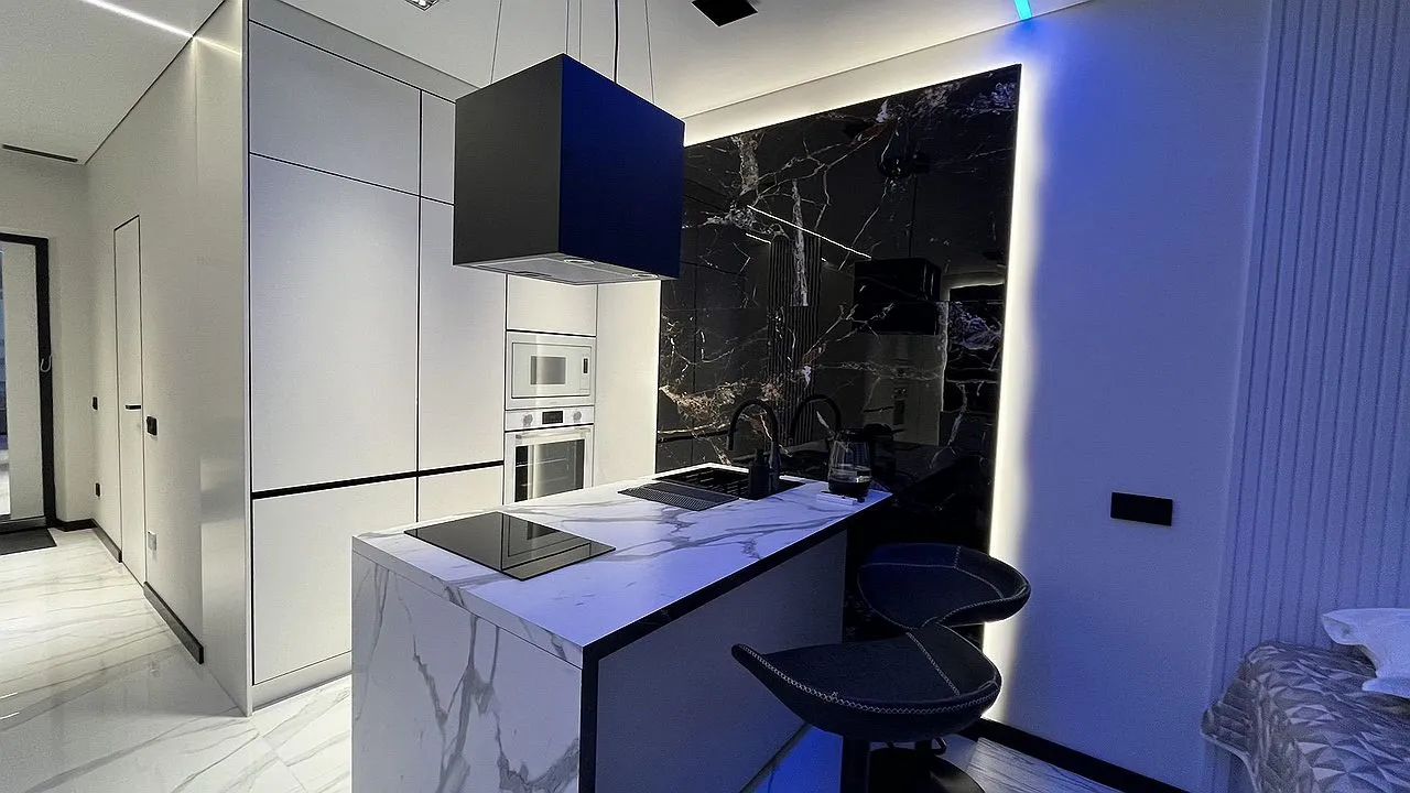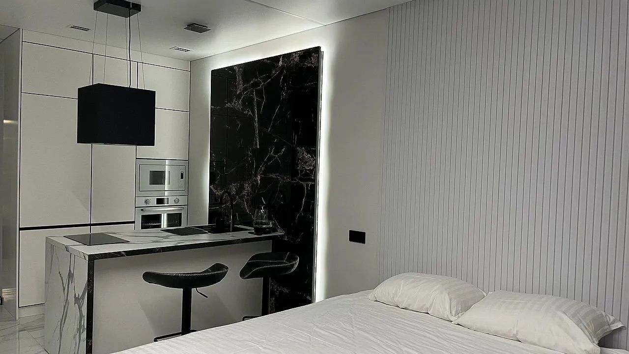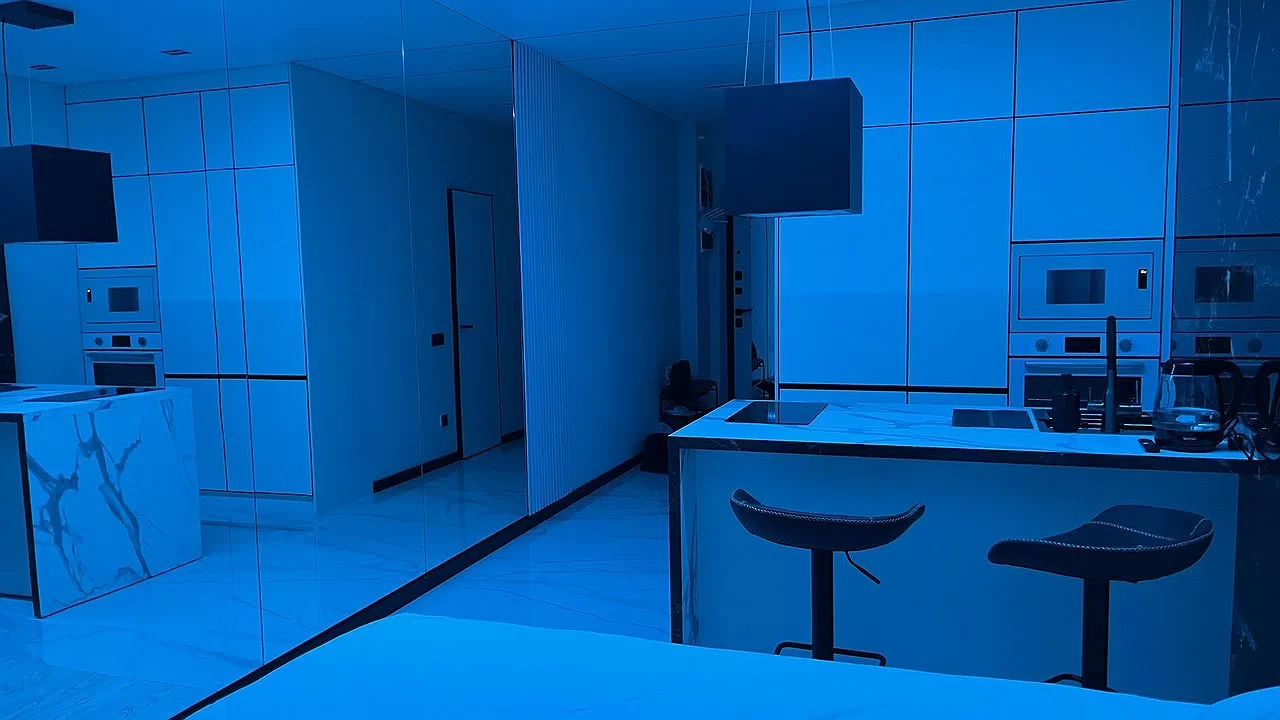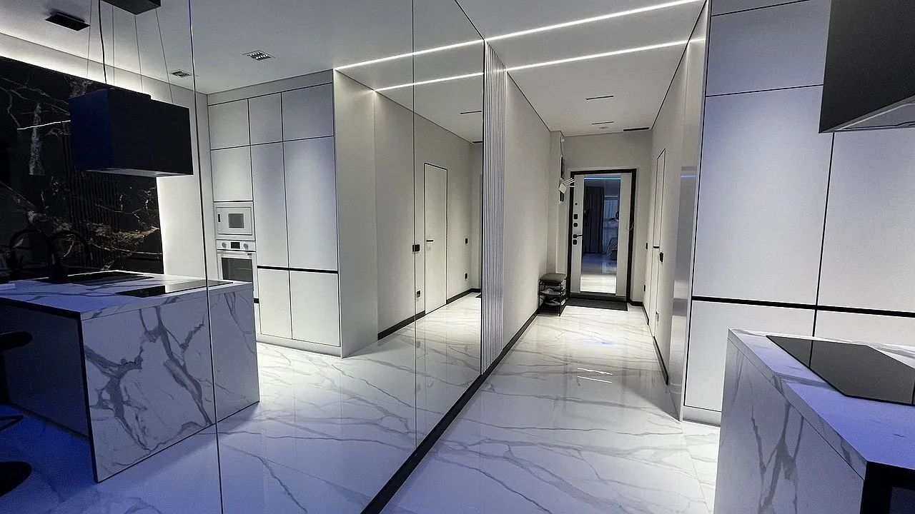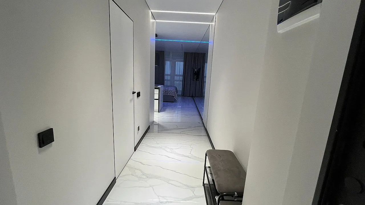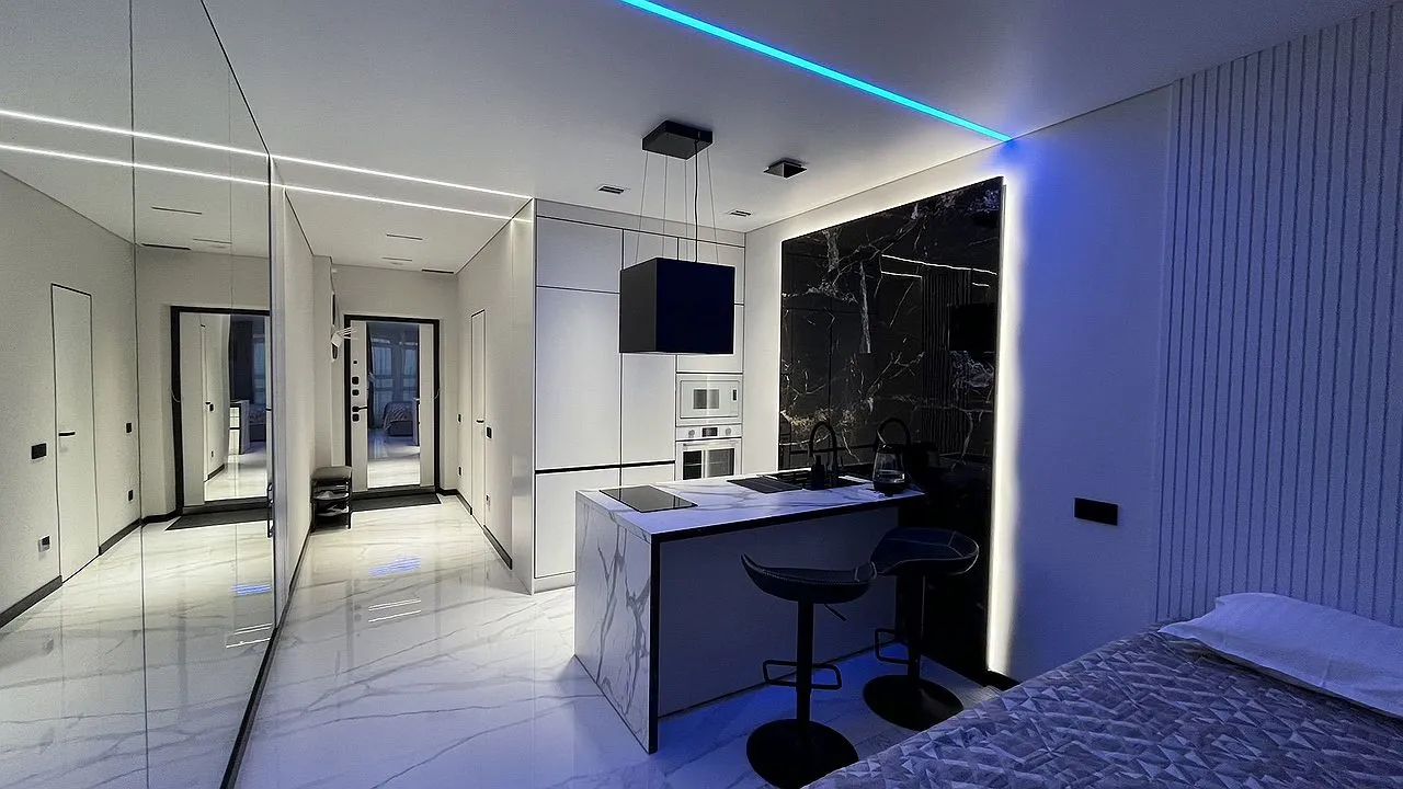 приятные дополнения: телевизор, интерьерную подсветку, тёплые полы в ванной и на балконе.