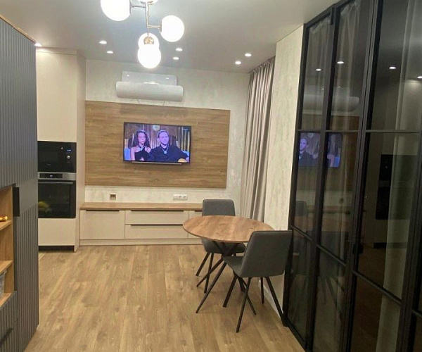 !Очень просторная евро двухкомнатная квартира , есть все необходимое для проживания. Очень удобный диван , раскладывается в полноценную двуспальную кровать. Большая гардеробная. |