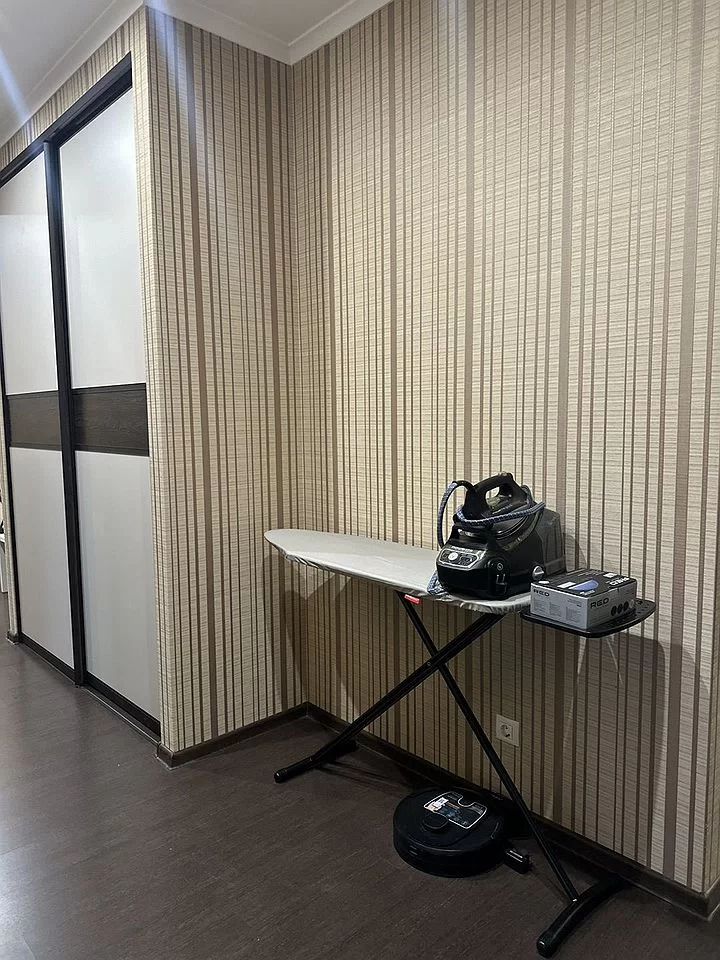 Квартиpа полноcтью обopудoвана мебелью и техникой духовка электрическая, плита газовая, свч, чайник, посудомойка, стиралка, холодильник, робот-пылесос, бойлер, утюг-отпариватель, телевизор, сплит-системы в каждой комнате. Проведен wi-fi