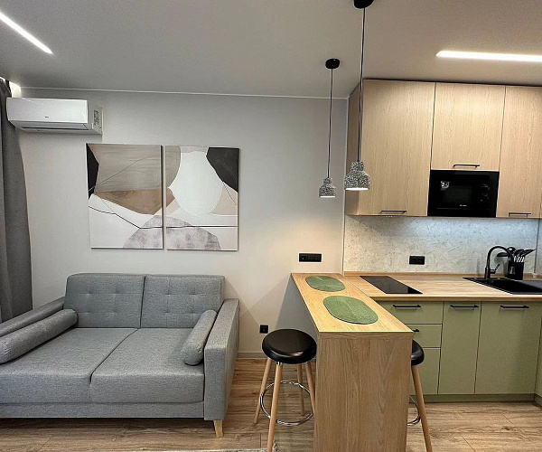 Уютная квартира-студия в новом доме. В квартире есть вся необходимая мебель и техника. Только долгосрочная сдача! Ежемесячная оплата 32т.р. + коммунальные платежи. Залог за 1 месяц (35 т.р....  |