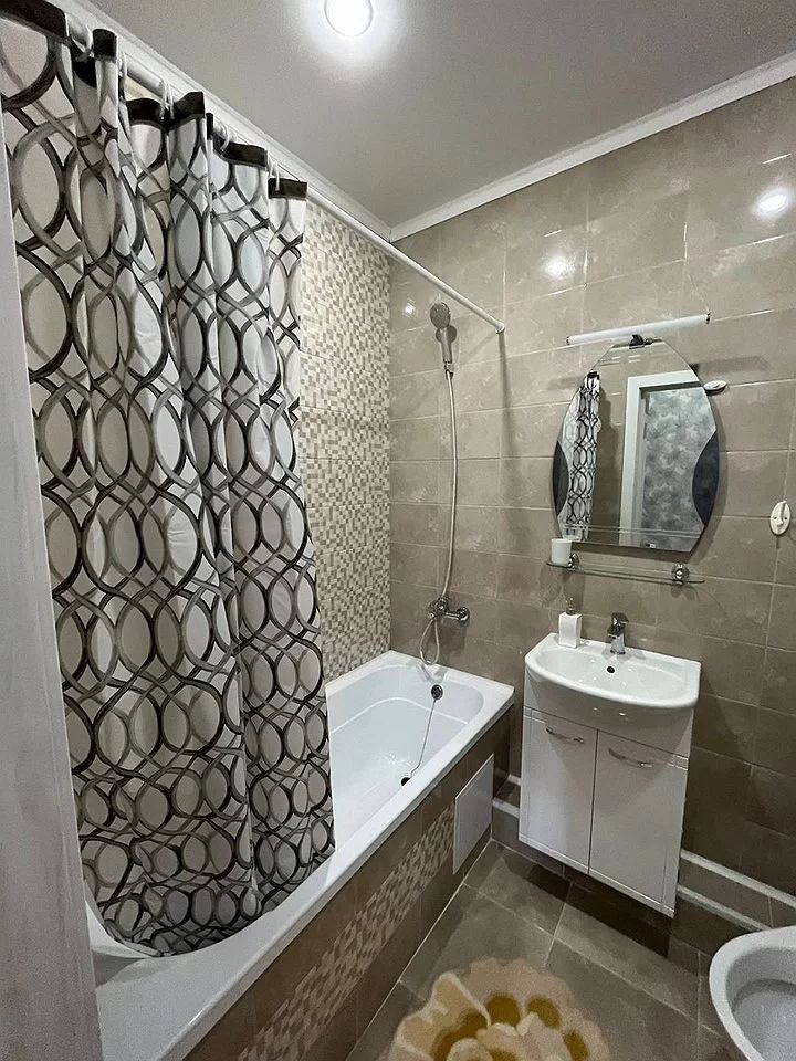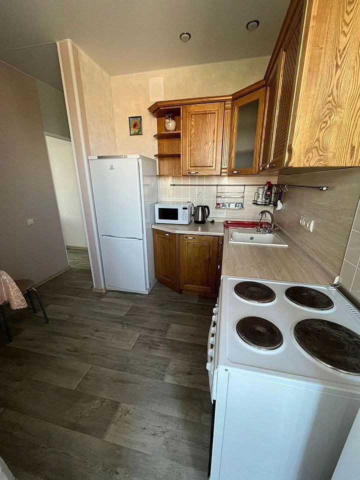 В квартиpe уcтановленa вcя необходимая мебель, стиральная машинка. На кухне есть мебель, холодильник , микроволновка, чайник. В комнате установлены кондиционер и двухспальная кровать.