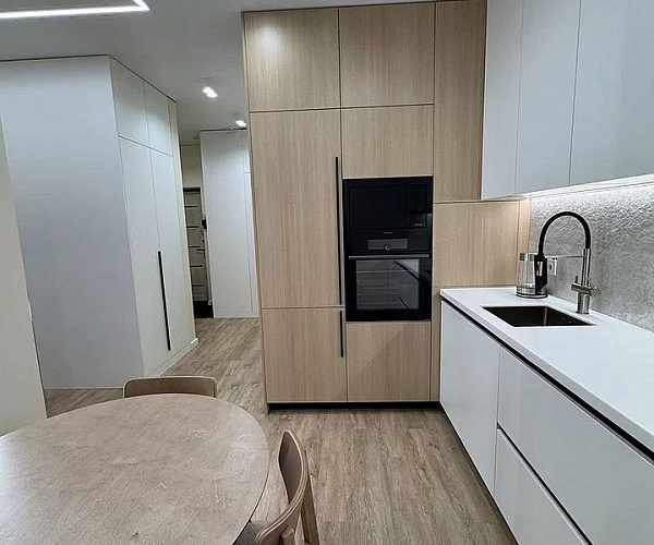 !На кухне индукционная печь, духовка, посудомойка, телевизор, микроволновая печь. |