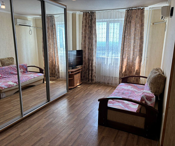 Очень удобное месторасположение,в шаговой доступности школы, д/сады, поликлиника, вся сеть супермаркетов. Уютная,полностью оборудована для проживания. |