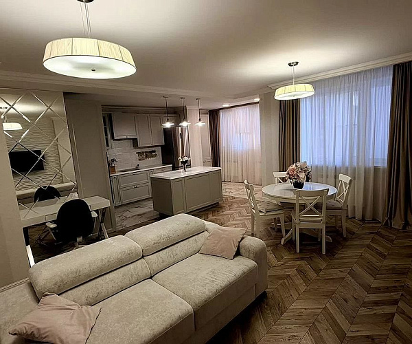 !Сдаётся просторная и уютная квартира 70,3 на 7 этаже нового дома с закрытой территорией, детской игровой площадкой, подземным паркингом, консьержем и видеонаблюдением. |