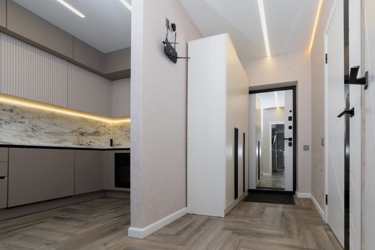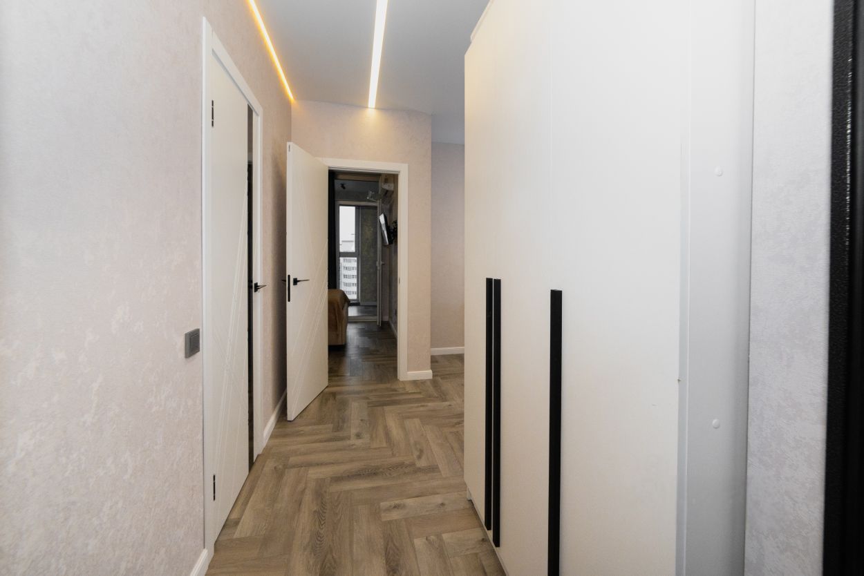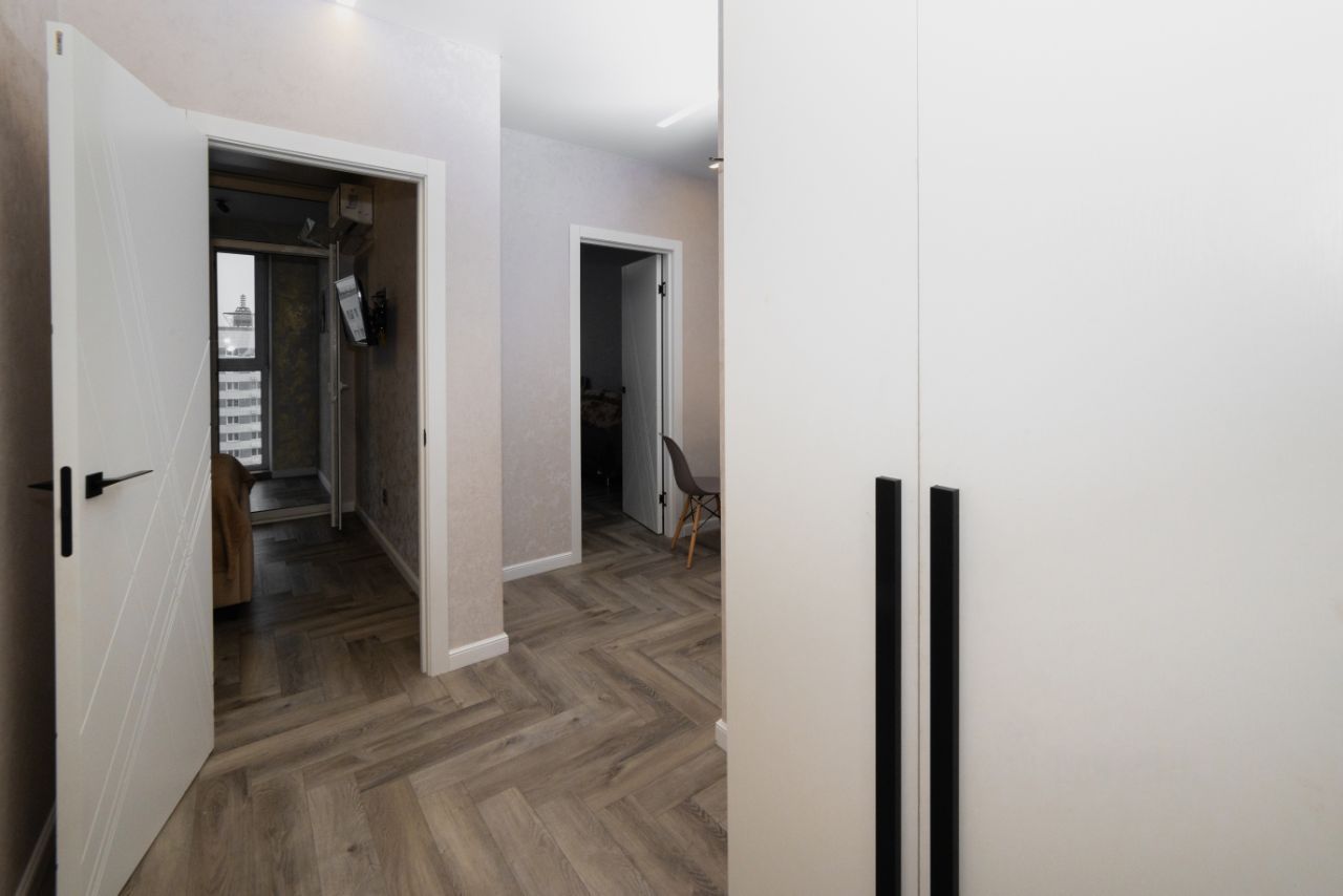 В квартире выполнен дизайнерский ремонт: на полу во всех комнатах качественный кварцвинил, современные натяжные потолки с функциональным светом и проходными выключателями. Окна ПВХ с отличным шумопоглащением. А так же подключен интернет и ТВ от МТС (стабильное соединение до 500 Мбит/с), система регулировки отопления.