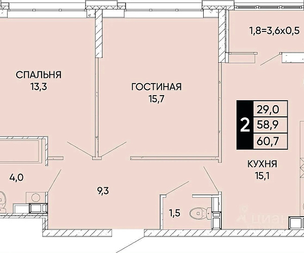 Кировский 60/30/21 м2 60 м2 11/24 эт. Монолитно-кирпич 65 000 |