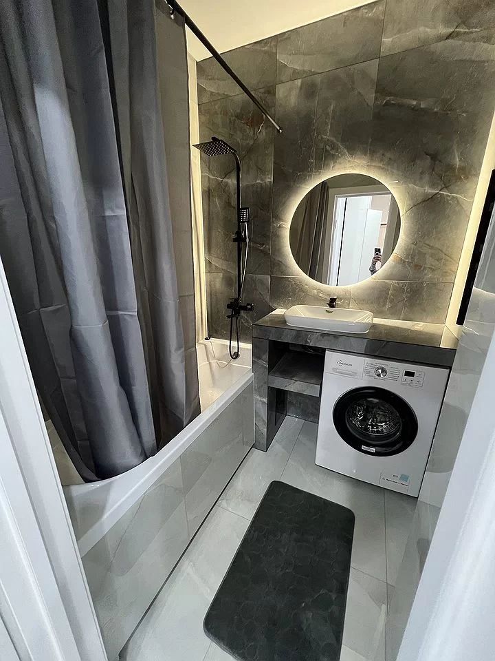 Комнаты изолированные, что создает ощущение уединенности и приватности. В спальне современная мебель и вместительный шкаф. Ванная комната выполнена в стильном дизайне с качественной сантехникой и стиральной машиной.