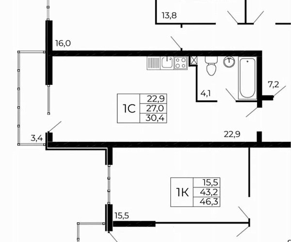 Советский 26/22/- м2 26 м2 5/18 эт. Монолит 25 000 |