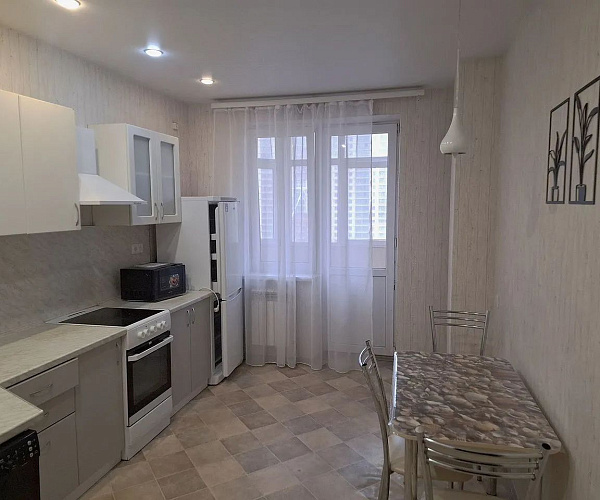 !Сдаётся уютная однокомнатная квартира с современным евроремонтом в новом доме, построенном в 2021 году. Общая площадь квартиры составляет 36 кв. м, расположена на 12 этаже 18-этажного здания. Высокие... |