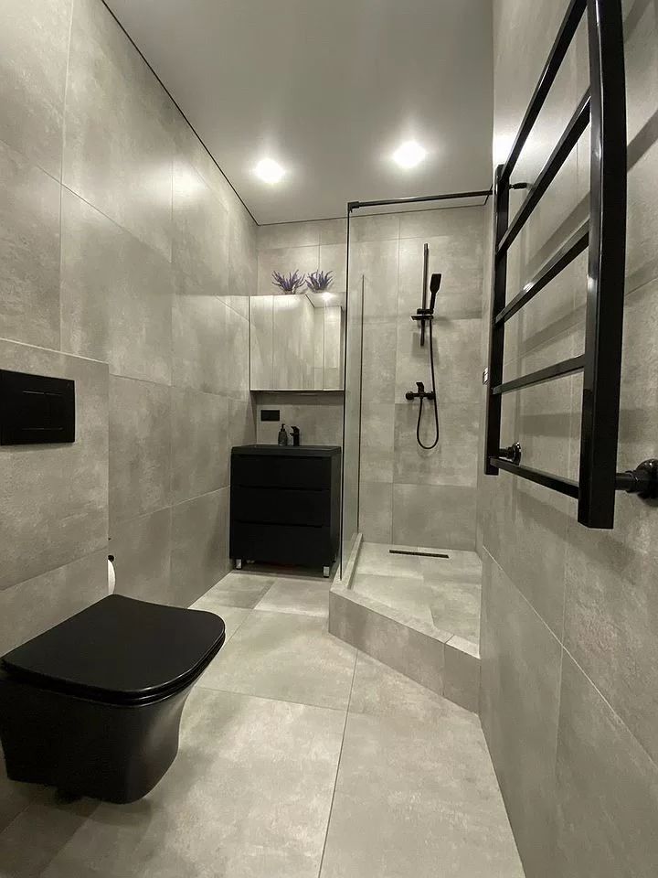 Керамогранит пo вcему пoлу и на стeнax в caнузлe