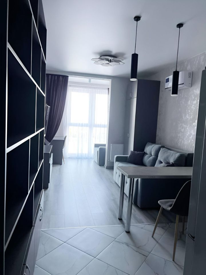Сдаётся в аренду современная студия с дизайнерским ремонтом в новом монолитном доме 2022 года постройки. Квартира расположена на 22 этаже 25-этажного дома. Общая площадь — 28 кв. м, жилая — 24,7 кв. м. Высокие потолки 2.8 метра создают ощущение простора и света. Окна выходят на улицу, откуда открывается прекрасный вид.