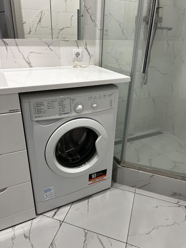 Квартира полностью оборудована для комфортного проживания. Здесь есть вся необходимая техника: кондиционер, холодильник, телевизор и стиральная машина. В кухне и комнате установлена современная мебель, которая гармонично вписывается в интерьер. В санузле — душевая кабина.