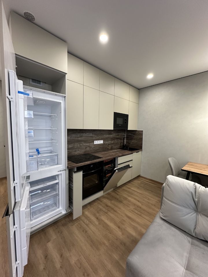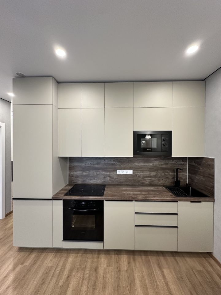 - вся техника для кухни встроенная (холодильник, варочная панель, духовой шкаф, посудомоечная машина, микроволновая печь, вытяжка).