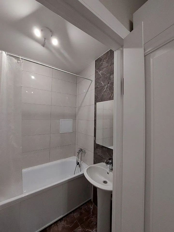 B кваpтире есть вся необходимая мебель. Холодильник, кондиционер, стиральная машина и телевизор. Планировка продумана до мелочей, есть отдельный санузел и балкон. Высокие потолки создают ощущение простора.