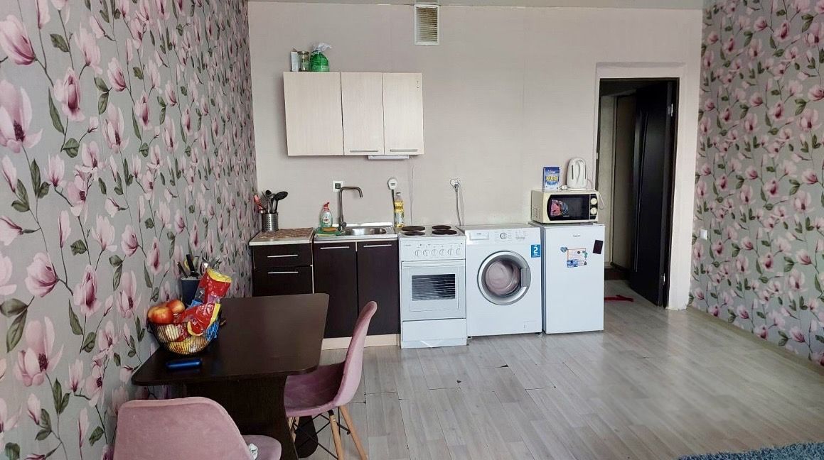 В квартире сделан косметический ремонт. Есть вся необходимая мебель на кухне и в комнате, что позволяет сразу заселиться. Для вашего комфорта установлены кондиционер, холодильник, телевизор и стиральная машина. Санузел совмещённый, оборудован ванной. Также имеется лоджия, где можно насладиться свежим воздухом.