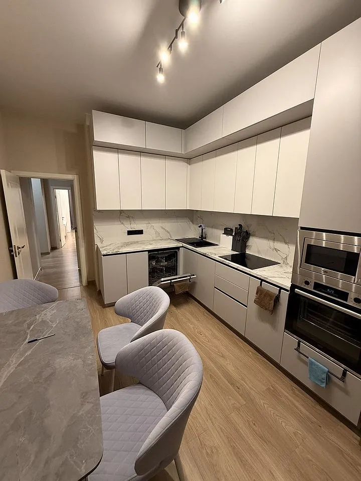 В квартире имеется все необходимое для проживания: холодильник, стиральная машина, электрическая варочная панель, посудомоечная машина, микроволновая печь, духовой шкаф, кондиционер, телевизор (диагональ 65), полотенцесушитель, фильтр с питьевой водой.