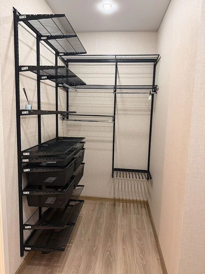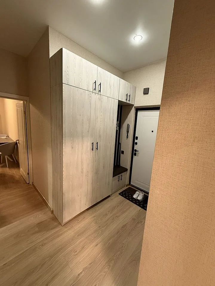 В квартире в отдельную зону также выделена гардеробная, много места для хранения.