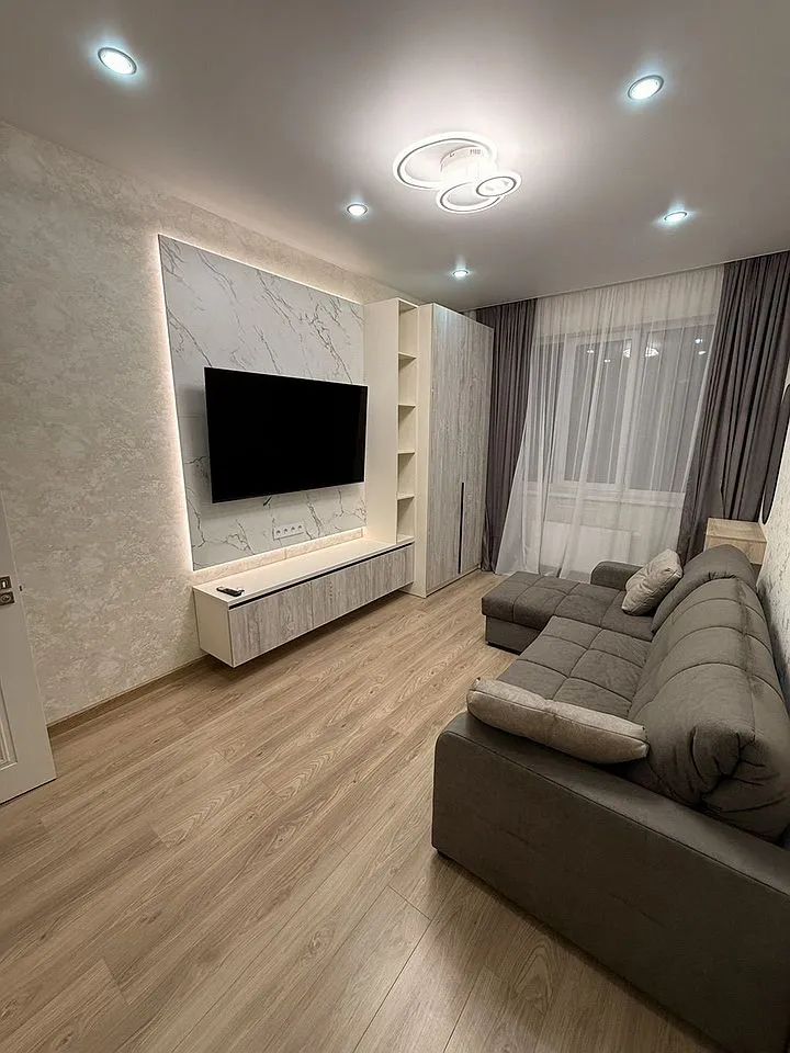 В квартире качественный современный ремонт, имеется раскладной двухспальный диван с ортопедическим матрасом, раскладывается в полноценную двухспальную кровать без стыков. Имеется отдельная туалетная консоль.
