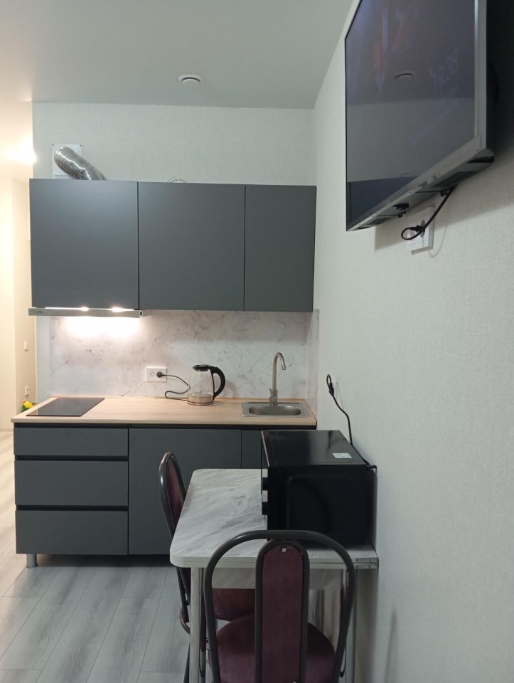 В квартире сделан качественный евроремонт. Пространство оформлено с учетом современных трендов, все необходимое для комфортного проживания уже есть. В комнате установлена удобная мебель, а на кухне вас ждут кондиционер, холодильник и телевизор. Ванная комната оборудована душевой кабиной, что делает утренние процедуры максимально удобными. Также в наличии стиральная машина. Интернет подключен, а значит, вы всегда будете на связи.